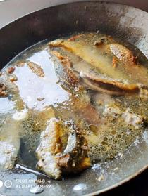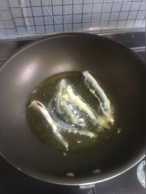 腌好的泥鰍下油鍋炸至金黃,注意不要炸焦,小火慢炸,熟透后大火逼油,立刻撈起來。