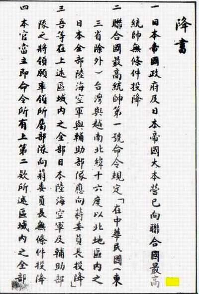 9月9日,侵華日軍總司令岡村寧次在南京向中華民國(guó)政府陸軍總司令何應(yīng)欽呈交投降書??谷諔?zhàn)爭(zhēng)及第二次世界大戰(zhàn)至此正式結(jié)束了,