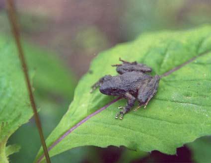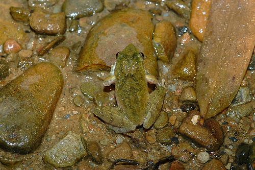 日本溪樹蛙又稱日本樹蛙、日本河鹿樹蛙,溫泉蛙,為樹蛙科溪樹蛙屬的兩棲動(dòng)物。分布于臺(tái)灣島等地。該物種的模式產(chǎn)地在日本。體型較其他樹蛙小,而雌性的日本樹蛙比雄性樹蛙稍大,成年的雄性長2.5至3厘米,雌性長3至4厘米,而其頭部的寬度約相等于全身的寬度。它們身體背面有一些小顆粒突起,表面極其粗糙,它們其中一個(gè)明顯的特征是其背部的中央近肩胛的地方有一對短棒狀突起。日本樹蛙的身體顏色會(huì)隨著環(huán)境而變化,一般有三種不同色系的變色方式,即鉛灰色、淡褐色或黃褐色三種色系。