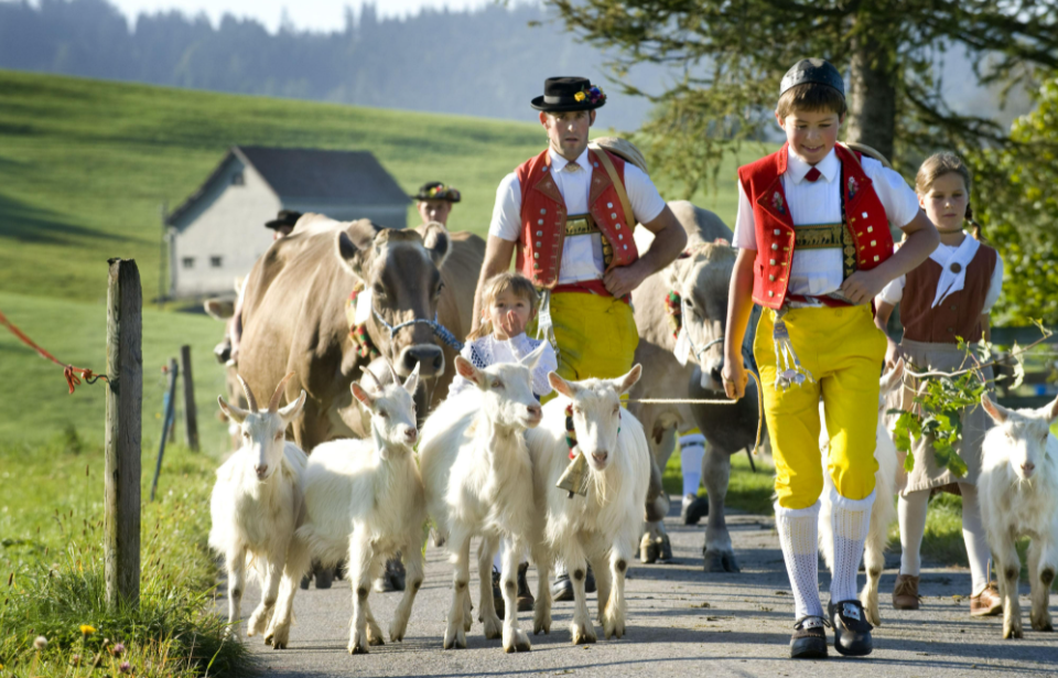 城鄉(xiāng)各地都保留了一些獨(dú)特的習(xí)俗和節(jié)日,如蘇黎世的鐘鳴節(jié)(1月中旬),伯爾尼的洋蔥節(jié)(11月第4個(gè)星期的星期一),阿爾卑斯山仲夏之際的牧場(chǎng)節(jié)等。