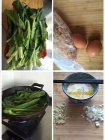 準(zhǔn)備原材料,小白菜用水抄一下,蒜,蔥切碎末,雞蛋打撒