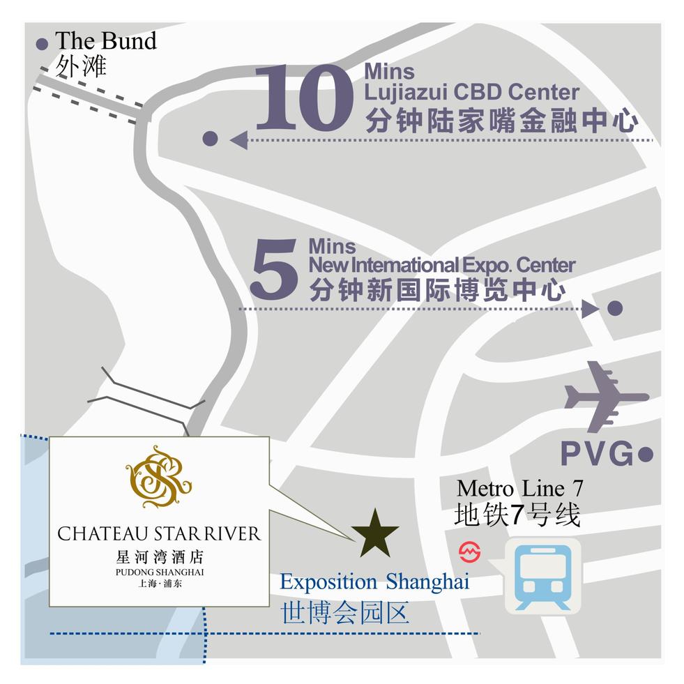 上海浦東星河灣酒店坐落于 上海浦東陸家嘴中心地帶,咫尺上海浦東商業(yè)中心。離上海著名外灘10分鐘車程,上海火車站20分鐘車程,虹橋機(jī)場或上海浦東國際機(jī)場只需30分鐘車程?!耙恍r(shí)交通圈”,商旅行程瞬即可達(dá)。