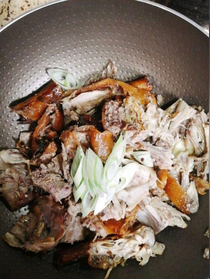 咔咔翻勻稍微一煎,根據(jù)鴨鴨出息程度扔蔥姜