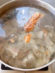 鴨架放入鍋中倒入適量清水開始燉噢。