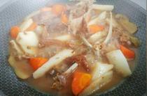 大火煮開撇下沫,根據(jù)自己飯量往里扔山藥胡蘿卜,繼續(xù)煮個三五分鐘再把火調(diào)小