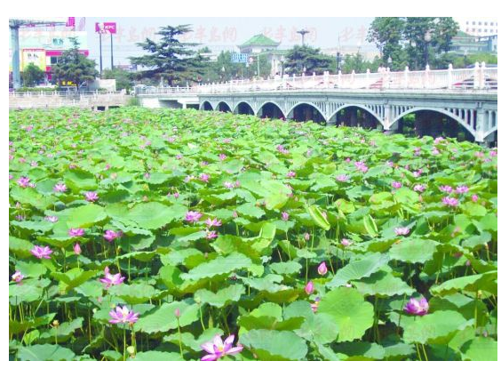 荷花灣是平度知名景點(diǎn)之一,曾是平度城市形象的一張名片。但自2000年荷花灣清淤改造以來,荷花灣一直沒有荷花,雖經(jīng)多次試栽均未成功。多年來,廣大市民期盼荷花灣景觀重現(xiàn)的愿望一直很強(qiáng)烈。為重現(xiàn)荷花灣昔日景觀,2010年5月21日至5月25日,市建設(shè)局借荷花灣排污管道改造之機(jī),聘請水生花卉種植園專家,根據(jù)荷花灣現(xiàn)狀,重新在荷花灣內(nèi)種植5000棵荷花,品種為深水紅蓮。現(xiàn)在的荷花灣,春夏秋三季,荷花滿池,恢復(fù)了昔日的風(fēng)采。