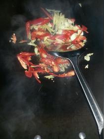 放姜,蒜,辣椒爆炒