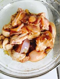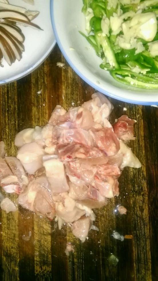 雞肉洗凈切塊,放姜片,加少許料酒鹽雞精耗油糖腌制一下備用