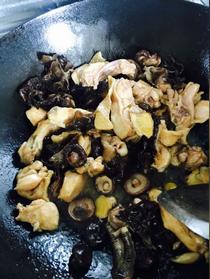 爆炒雞肉出油放香菇木耳繼續(xù)翻炒