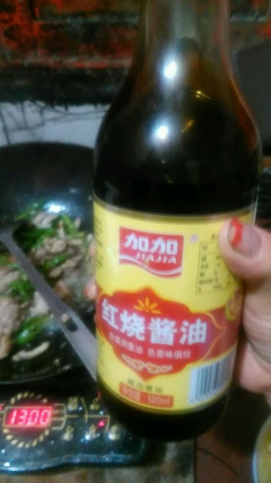 放辣椒炒。再放香菇。放紅燒醬油再加一點(diǎn)耗油