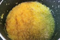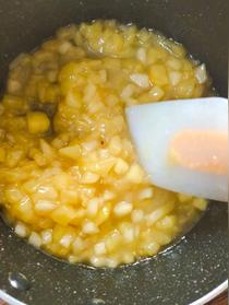 把果肉連漬出的水份一同倒入不粘鍋,大火燒開(kāi)。