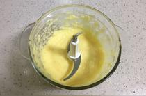 腌漬好的果肉會(huì)出很多水。把果肉取出,用料理機(jī)打碎。