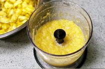 把菠蘿塊和蘋(píng)果塊放入料理機(jī)打成泥