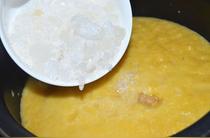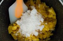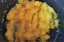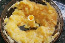 將打好的菠蘿泥倒入電飯煲中;
