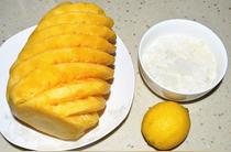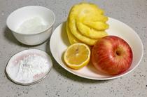 準(zhǔn)備好食材,菠蘿是買(mǎi)來(lái)就削好的,對(duì)菠蘿過(guò)敏的話,可以先泡鹽水后瀝干。