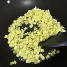 看到菠蘿粒炒制半透明時(shí)加入水淀粉,粘稠時(shí)盛出備用