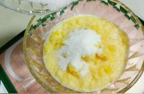 黃油軟化放入菠蘿塊加入白糖攪拌