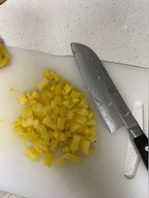 浸泡好的菠蘿切小丁,加砂糖腌制15分鐘左右。
