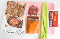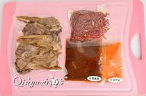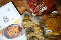 取出鴨頭和醬包(一袋鴨頭、一袋干鍋辣醬、一袋火鍋辣醬和一袋干辣椒和白芝麻)