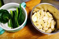 準(zhǔn)備好食材,剝好大蒜備用。