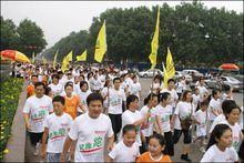 本次活動是為慶祝北京奧運會舉辦一周年,弘揚奧運精神,積極開展“全民健身日”活動,促進師生身體健康,提高健康意識,增強愛國情懷。學(xué)校組織近百名教職員工組成安保人員,全程負責組織安排,保證學(xué)生安全,參加人員均為該校師生,很多家長也自愿參加了此項活動。早上8點前,萬名師生與家長身著桔黃色的“尖子生特訓(xùn)班”校服和白色的印有“信步健康跑”醒目標志的運動衫從四面八方聚集到光明路街心花園集合,彩旗飄揚,群情興奮,大家以極大的熱情投入到這項健身活動。8點15分市教育局副局長鄭東麗親自為長跑發(fā)令,并與師生家長共同長跑。長跑隊伍由光路明路建設(shè)路交叉口街心花園北起,沿建設(shè)路東行,至新華路與建設(shè)路交叉口東神馬俱樂部門口。