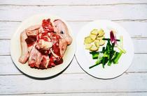 準(zhǔn)備食材:一只鵝的四分之一,香蔥2根,生姜1塊。