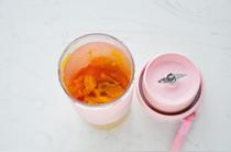 南瓜蒸好去皮,切小塊放入果汁杯。
