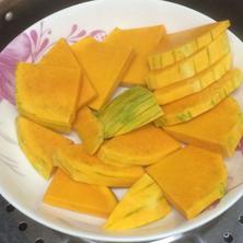 鍋里加入適量的水燒開,將裝南瓜的盤子放入鍋中,一直蒸熟