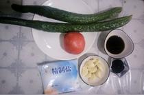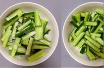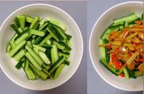 7,殺過水的黃瓜過水幾遍洗凈控水; 8、倒入配料醬汁翻拌均勻;