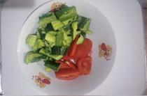 把西紅柿切片,黃瓜用刀背拍一下切塊。