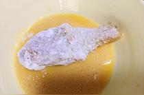 4.將作法2的雞腿沾裹上作法3的面衣備用。