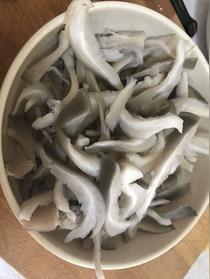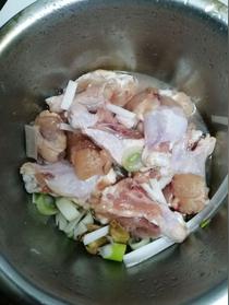 從里到外碼上鹽和料酒,加入蔥姜,腌制半小時