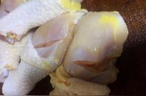 雞腿洗干凈,瀝干水用刀切兩刀方便入味。