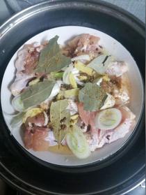 腌好后上蒸鍋,放入大蔥、姜、小茴香、花椒、料酒、香葉,蒸半小時