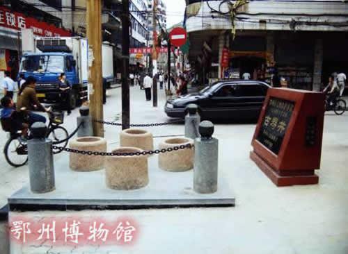 四眼井,位于鄂州市主城區(qū)(老城區(qū))鼓樓街與十字街交匯處的人行道上。1958年8月,被鄂城縣人民委 員會(huì)公布為縣級(jí)文物保護(hù)單位,1984年10月被鄂州市人民政府公布為市級(jí)文物保護(hù)單位。四眼井始建于宋代,元代進(jìn)行了維修并建井亭,清代前期井亭已廢,清末期重建,抗日戰(zhàn)爭(zhēng)時(shí)期,井亭被日寇飛機(jī)轟炸所毀,漸廢棄掩埋于地下。2004年,鄂州市文物部門對(duì)四眼井進(jìn)行了淘洗清理,并恢復(fù)井圈等設(shè)施。通過(guò)此次淘洗,發(fā)現(xiàn)該井為青磚砌成的長(zhǎng)筒狀井身,井口有一四孔的鐵盤覆蓋,上有紅砂石井圈。