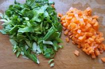青菜,胡蘿卜洗干凈切小塊。