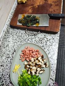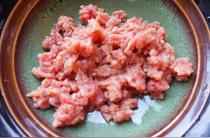 再剁成碎,小寶寶的話剁成肉泥。用少許鹽腌制10分鐘。