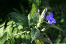 【花蕊】發(fā)育雄蕊2,著生于喉部,花絲粗壯,長約3毫米,花藥內(nèi)曲,退化雄蕊2,很小,著生于發(fā)育雄蕊花絲的基部。子房和花柱被柔毛,柱頭扁平,先端漸尖;