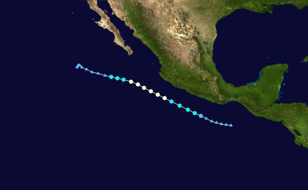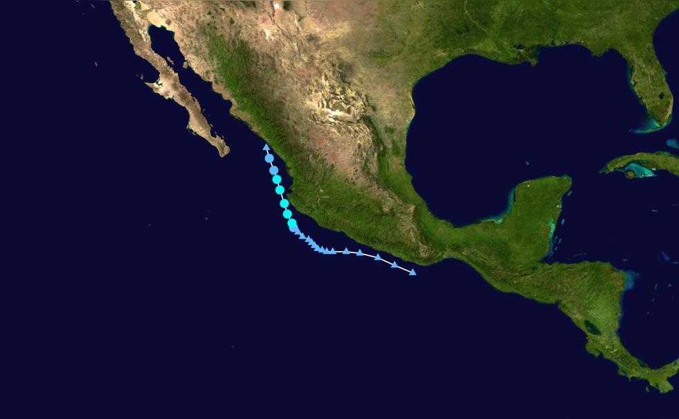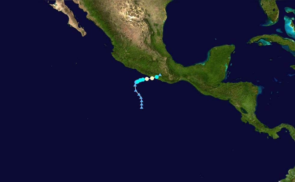 2017年05月09日14時(shí),美國(guó)國(guó)家颶風(fēng)中心(NHC)將其升格為熱帶低氣壓,并給予編號(hào)1E。20時(shí),美國(guó)國(guó) 家颶風(fēng)中心將其升格為熱帶風(fēng)暴,并命名