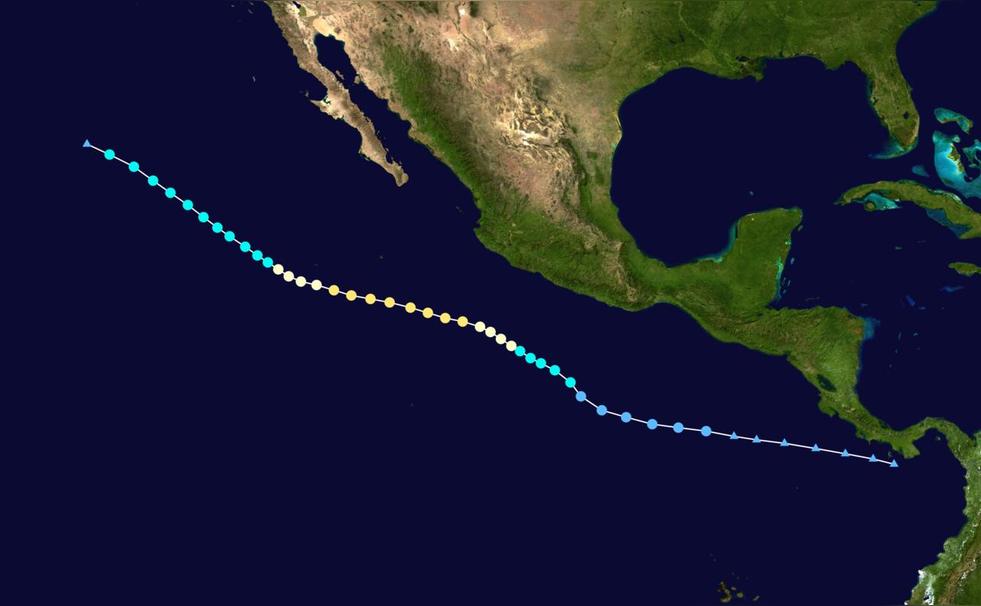 2017年07月16日,一個(gè)低壓區(qū)在下加利福尼亞半島南端西南偏南800英里處生成。05時(shí),美國(guó)國(guó)家颶風(fēng)中心(NHC)對(duì)其未來兩天發(fā)展評(píng)級(jí)為"LOW"并發(fā)展概率為20%,未來五天發(fā)展評(píng)級(jí)為"LOW"并發(fā)展概率為30%。