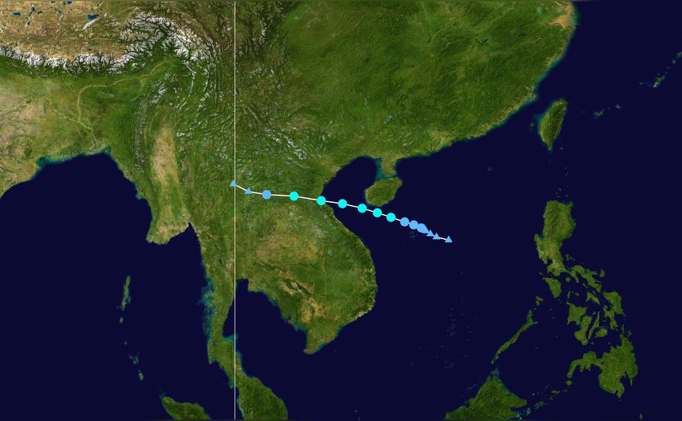 7月17日2時10分許,“塔拉斯”在越南義安省沿海登陸,登陸時中心附近最大風力有10級(28m/s),中心最低氣壓為985百帕,隨后日本氣象廳將其降格為熱帶風暴。當日4時許,中央氣象臺亦將其降格為熱帶風暴[4]。當日5時許,香港天文臺將其降格為熱帶風暴,聯(lián)合臺風警報中心對其發(fā)布最后警報(FW)。當日8時,中央氣象臺將其降格為熱帶低壓并對其停止編號[5]。當日14時許,聯(lián)合臺風警報中心將其降格為熱帶低壓。當日17時許,日本氣象廳將其降格為熱帶低氣壓。