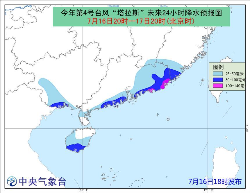 7月16日2時許,聯(lián)合臺風警報中心將其升格為熱帶風暴。當日5時許,香港天文臺亦將其升格為熱帶風暴。當日14時許,中央氣象臺將其升格為強熱帶風暴。當日17時許,日本氣象廳亦將其升格為強熱帶風暴。當日21時許,香港天文臺將其升格為強烈熱帶風暴。當日晚間,“塔拉斯”在北部灣南部海面達到其巔峰強度,隨后受陸地影響而逐漸減弱。