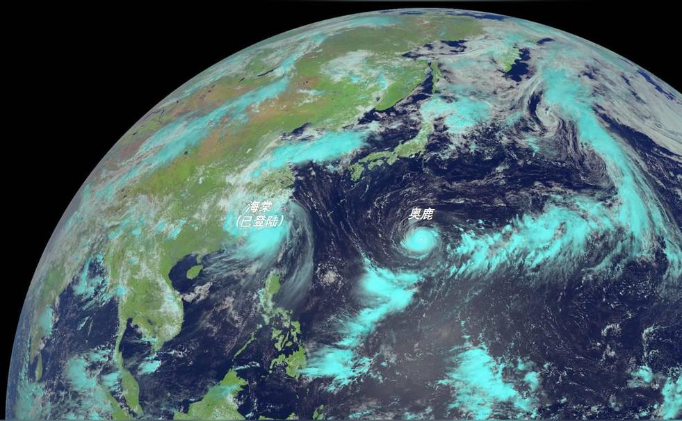 臺風奧鹿與玫瑰的發(fā)展對比(7月21日和22日)