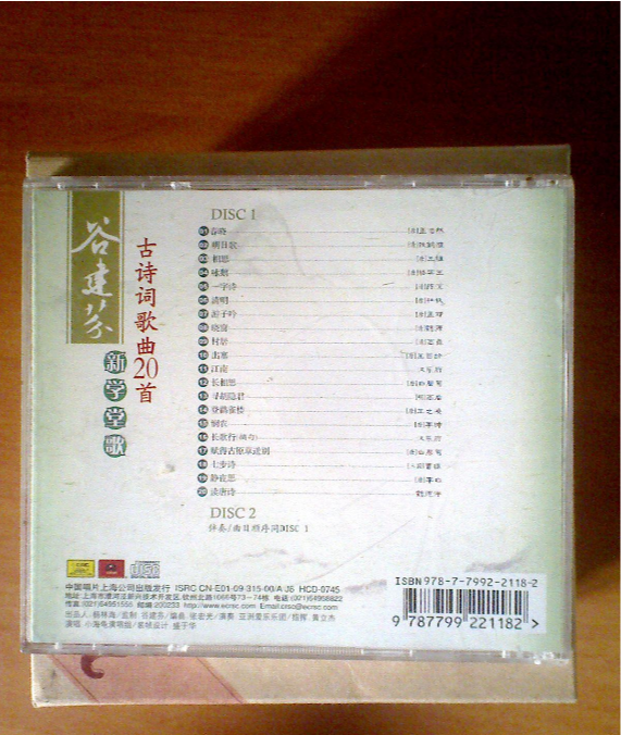 本碟由谷建芬監(jiān)制,張宏光編曲,將20首優(yōu)秀的古詩歌譜成音符,易于孩子在優(yōu)游的唱歌中既學(xué)到了知識,又培養(yǎng)了樂感。本碟可作為家庭教育之用,也可作為學(xué)堂教學(xué)之用。[1]