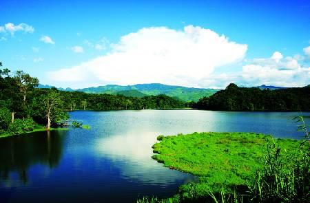 西盟佤族自治縣位于云南省西南部、思茅地區(qū)西部。勐梭龍?zhí)段挥谖髅丝h城西邊3公里處,潭水較深,四周林翠山青,景色秀麗。龍?zhí)睹娣e750畝,地面與潭底最深達29米。湖中碧水粼粼,波平如鏡,仙鶴起落,野鴨成群,湖邊苔蘚遍地。龍?zhí)端嫔希藗儾灰娪新淙~,傳說是多情的姑娘變成了小鳥,守在湖邊,銜走了落入水中的每一片樹葉,以保持情人清潔的面目不受破壞。2006年被評為“國家級水利風景區(qū)",美麗的勐梭龍?zhí)杜c獨具特色的西盟佤城相依相伴,形成了“城旅融合、城湖融合、城景融合”的“自然+人文”美景。勐梭龍?zhí)吨苓叿植剂擞泻商?、濕地、龍摩爺圣地、圣水、蟒蛇谷、盤須巖、祈雨洼、將軍呤、猴子崖、仙石凹、賧佛山、千指樹、樹包石、相思樹、聚友灘、緬寺、觀碧亭、王冠蕨等20余處人文內涵豐富、景觀優(yōu)美的景點。2006年被評為“國家級水利風景區(qū)",2015年評為國家AAAA級景區(qū)。