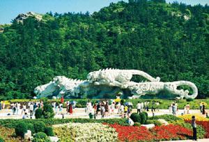 大連虎雕廣場 位于大連市中山區(qū)老虎灘?;⒌駨V場面積15,700平方米,群虎雕塑長35.5米,寬、高為6.5米,由500塊花崗巖大理石精雕而成,重達(dá)2,000多噸,6只形態(tài)各異的老虎,頭向東方,迎風(fēng)長嘯,虎虎生威,它是由我國著名畫家、雕塑家韓美林設(shè)計(jì)。