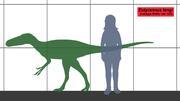 郎氏始暴龍,生存年代為下白堊紀(jì)約1.3億年前。始暴龍化石的前上頜骨牙齒橫切面呈D形、有鋸齒邊緣,脛骨及跖骨相對(duì)較長(zhǎng),都是暴龍超科的特征。它們的暴龍超科原始特征則是較長(zhǎng)的頸椎、完全發(fā)展的長(zhǎng)前肢手臂、以及頭顱骨頂部沒(méi)有冠飾等,這都時(shí)后期暴龍超科中沒(méi)有的。但是,始暴龍是比例上手掌最長(zhǎng)的獸腳亞目恐龍之一。始暴龍可能會(huì)獵食棱齒龍及禽龍等草食性動(dòng)物。根據(jù)其正模標(biāo)本,郎氏始暴龍被估計(jì)身長(zhǎng)約4米長(zhǎng)。這個(gè)標(biāo)本是個(gè)未成年個(gè)體,因此成年時(shí)的身長(zhǎng)會(huì)更長(zhǎng)。