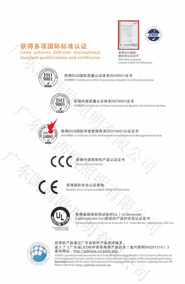 凱西歐產(chǎn)品通過廣東省標桿產(chǎn)品測評體系,進入了《廣東省LED標桿體系推薦產(chǎn)品目錄(室內(nèi)照明SN201210)》等等。