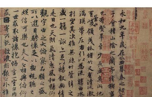 被號(hào)稱為“天下第一行書”的《蘭亭序》真跡傳說被唐太宗李世民陪葬于昭陵之中,李世民一生酷愛王羲之書法,貞觀初年曾下詔出內(nèi)府金帛,購(gòu)求王字、得一千五百余卷,其中真?zhèn)坞s陳,更命魏徵、虞世南、禇遂良鑒別整理,而唐太宗在諸多真跡中尤情篤于《蘭亭序》,愛不釋手,常于深夜把燭學(xué)《蘭亭》,為了使此名跡得以流傳,他生前曾命趙模、韓道政、馮承素、諸葛貞等精工模榻,又命虞世南、諸遂良各臨一本,現(xiàn)藏于北京宮博物院的《蘭亭序墨跡三種》即馮承素摹本和虞、褚的臨本,千余年來,歷經(jīng)戰(zhàn)亂,此三種墨跡能神奇般地流傳下來,實(shí)乃幸事。