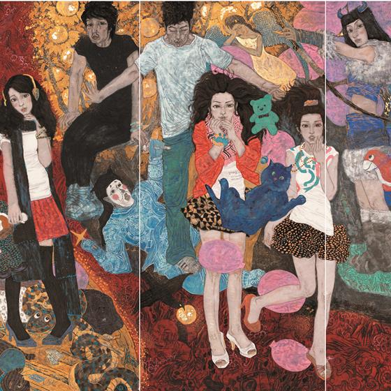 許瑩 大師之夢 180cm×98cm×2 紙本設色 2014年
